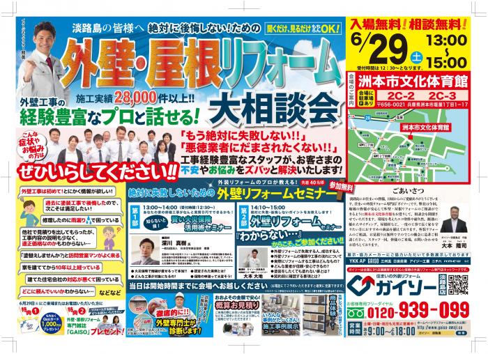 6/29◆外壁・屋根リフォーム大相談会◆洲本市文化体育館にて開催決定!